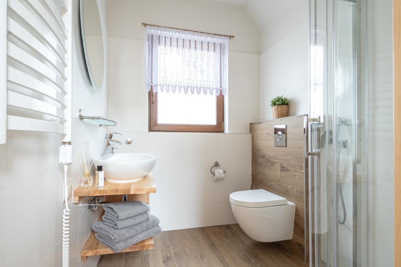 Domek posiada oddzielne wejście, 2 oddzielne łazienki z prysznicem oraz 2 oddzielne sypialnie. W kuchni zapewniono płytę kuchenną, lodówkę, zmywarkę do naczyń i przybory kuchenne. Dla gości dostępny jest również sprzęt do grillowania. Z balkonu mamy widok na ogród oraz okolice.