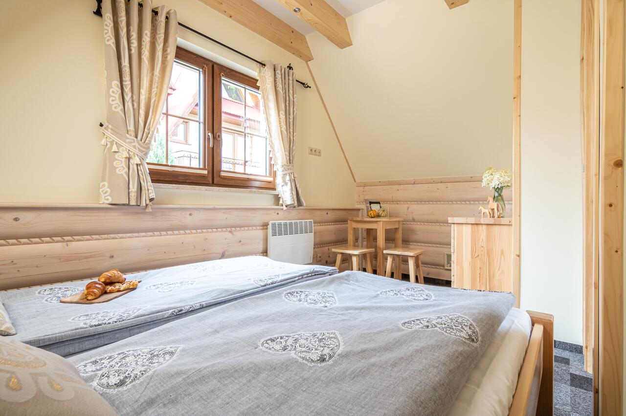 Domek posiada oddzielne wejście, 2 oddzielne łazienki z prysznicem oraz 2 oddzielne sypialnie. W kuchni zapewniono płytę kuchenną, lodówkę, zmywarkę do naczyń i przybory kuchenne. Dla gości dostępny jest również sprzęt do grillowania. Z balkonu mamy widok na ogród oraz okolice.